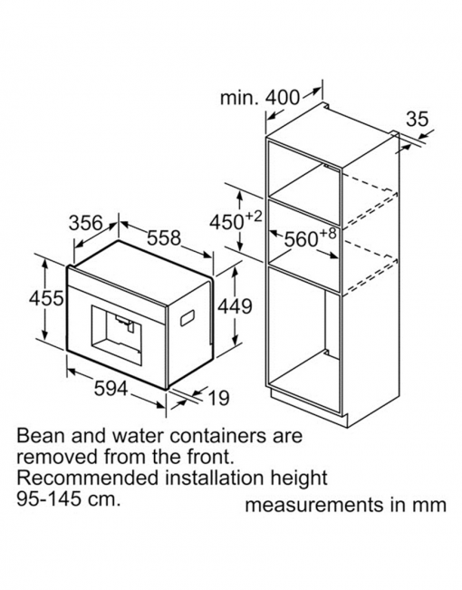یکی از محصولات توکار بوش می باشد که جنس بدنه استیل و بسیار مقاوم که به مدت طولانی تری حرارت را حفظ می کند مجهز به صفحه نمایش به صورت لمسی توان مصرفی دستگاه برابر با 1600 وات است دارای قابلیت تنظیم 8 حالت میکس قهوه و شیر و ذخیره آن در حافظه دستگاه می باشد مجهز به درجات مختلف حرارت می باشد که 3 درجه آن برای تهیه قهوه و 4 درجه حرارت برای دمای آب می باشد.این دستگاه دارای مخزنی با ظرفیت 2.4 لیتر که 20 تا 250 میلی لیتر قهوه را پوشش می دهد میزان فشار بخار در این دستگاه قهوه ساز بوش برابر 19 بار است که منجر به ایجاد کف بر روی قهوه می گردد سری های قابل شستشو براحتی قابل جداشدن می باشد و همچنین قابلیت شستشو در ماشین ظرفشویی را دارد.