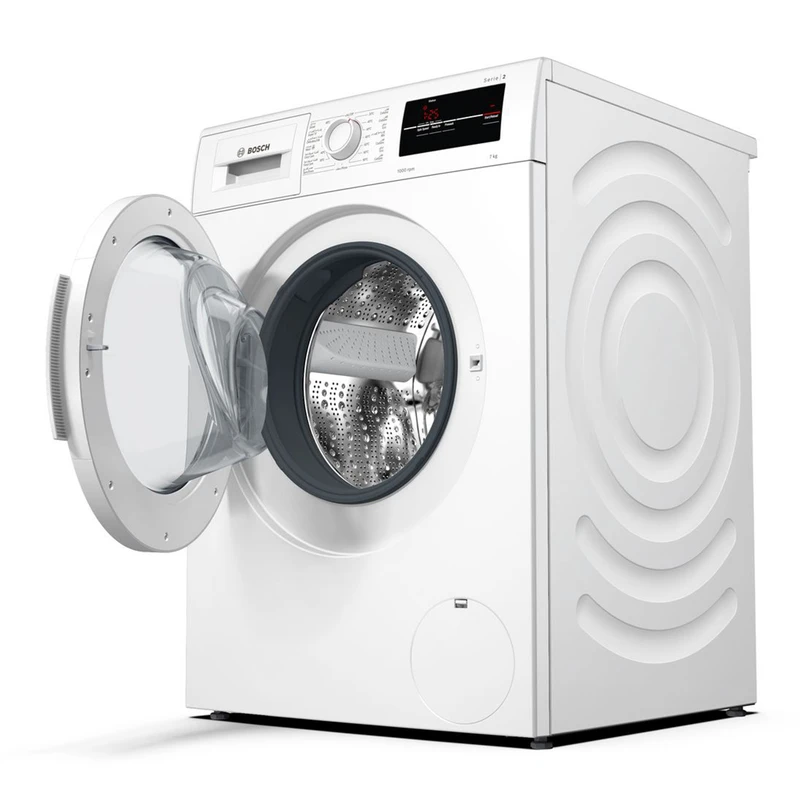 ماشین لباسشویی بوش BOSCH مدل WAJ20170SGC با رده انرژی +++A جزء لباسشویی های کم مصرف و پر طرفدار شرکت بوش میباشد. لباسشویی 20170 دارای ظرفیت 7 کیلوگرم بوده که مناسب برای خانواده هایی با جمعیت متوسط میباشد. طراحی دیگ به صورت موجدار بوده که موجب شستشوی آرام و کارآمد البسه میشود. پنل این لباسشویی دارای نمایشگر دیجیتال ، کلید های تنظیم عملکرد و ولوم چرخشی برای تنظیم برنامه ی شستشو میباشد. برنامه های شستشو شامل شستشوی الیاف نخی با دما های 20 ، 40 ، 60 و 90 درجه ، شستشوی اقتصادی با دمای 40 و 60 درجه ، شستشوی الیاف ظریف ، پشمی ، ملحفه و شستشوی سریع 15 دقیقه ای میباشد. توسط کلید های تنظیم عملکرد نیز میتوان قابلیت VarioPerfect ، speedPerfect و عملکرد شروع با تاخیر را تنظیم نمود. از طریق قابلیت Vario Perfect در این لباسشویی میتوان متناسب با نوع لباس ، برنامه شستشو را انتخاب نمایید که موجب صرفه جویی 65 درصدی در زمان و 50 درصدی در مصرف انرژی میشود.